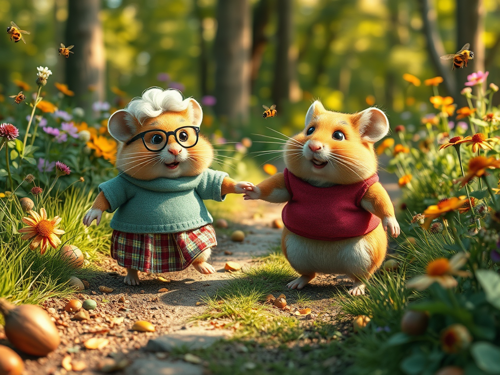 “Grandma and Grandpa Hamster Go for a Walk”