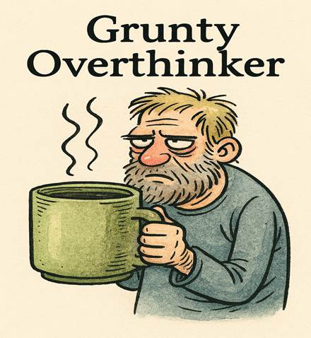 Author’s Note: This playful poem was sparked by a phrase I stumbled upon on DirtySciFiBuddha’s site: “Musings and books from a Grunty Overthinker.” The words made me smile—and soon, a character named Grunter began to take shape. What followed was a whimsical journey through coffee, muses, and the weary joy of overthinking. I hope it brings a chuckle, a sigh, or maybe even a little comfort.