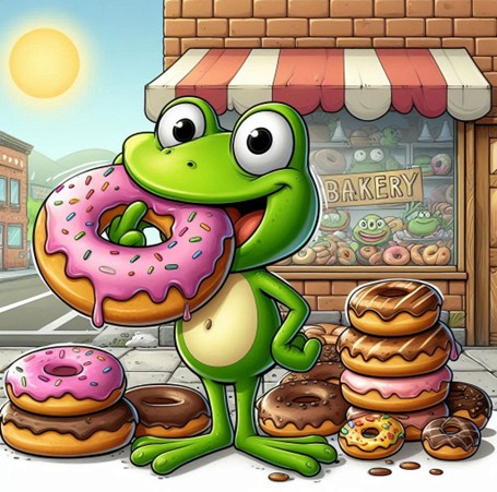 The frog that eats donuts with love and compassion!