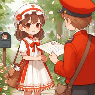 And there is a girl wearing a beautiful red and white dress.