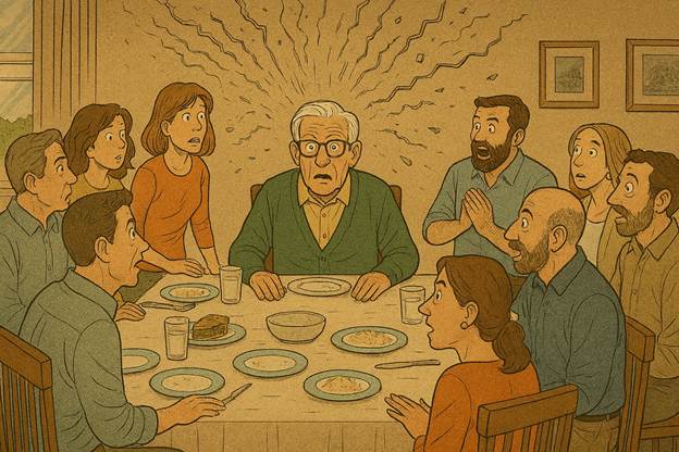 Grandpa just jumped; dishes rattling on the table.