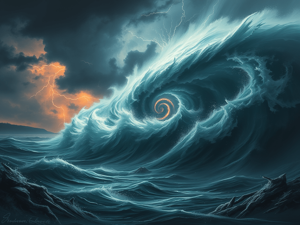 To a raging storm that fills the sky.
