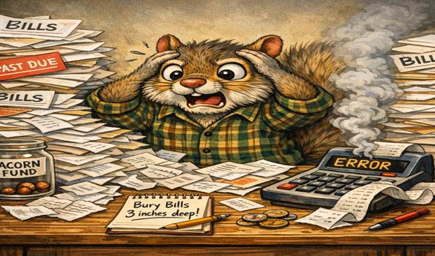 I wish a, racoon would come and steal these bills from me.