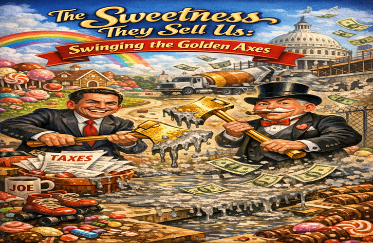 (This poem plays with musical‑theater rhythm and candy‑coated imagery. Which explores the gap between what we’re promised and what we experience. A little humor, a little truth, and a whole lot of golden axes swinging in the background.)