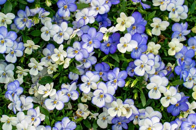 Pretty poppin’ pansies, waving quietly in a row,